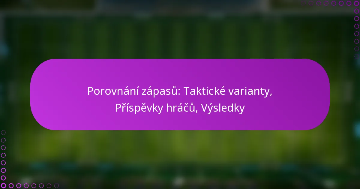Porovnání taktických přístupů napříč různými zápasy ukazuje, jak různé strategie mohou vést k různým výsledkům. Analýza úspěšných týmů často ukazuje kombinaci účinných formací a přizpůsobivých strategií, které reagují na taktiku soupeřů.