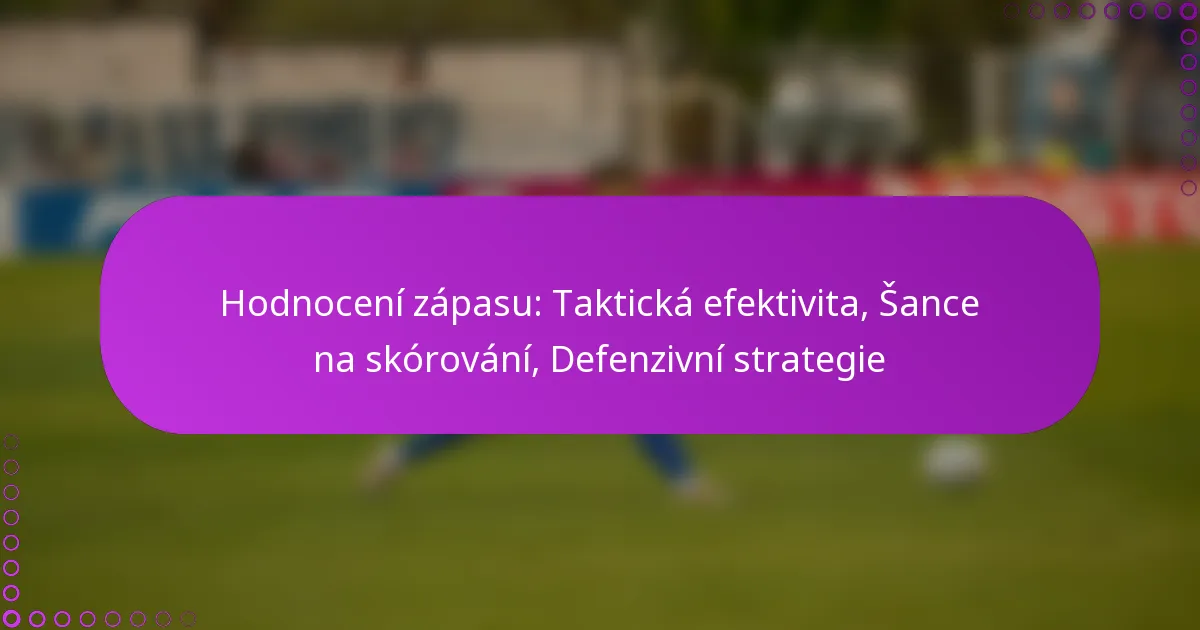 Hodnocení zápasu: Taktická efektivita, Šance na skórování, Defenzivní strategie